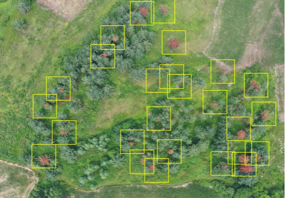 森林病蟲害是林業(yè)有害生物源之一,常見的包括松毛蟲、天牛、白蛾等病蟲害。利用多時相衛(wèi)星遙感影像,根據(jù)感染病蟲害樹木與正常樹木在影像上的明顯光譜差異,普查疑似病蟲害區(qū)域。針對衛(wèi)星遙感提取的疑似病蟲害區(qū)域和抽查的小班,采用無人機航測進行詳查。實現(xiàn)全面、準確、迅速監(jiān)測管理病蟲害,及時準確發(fā)布病蟲害預警信息,有效指導病蟲害防控。