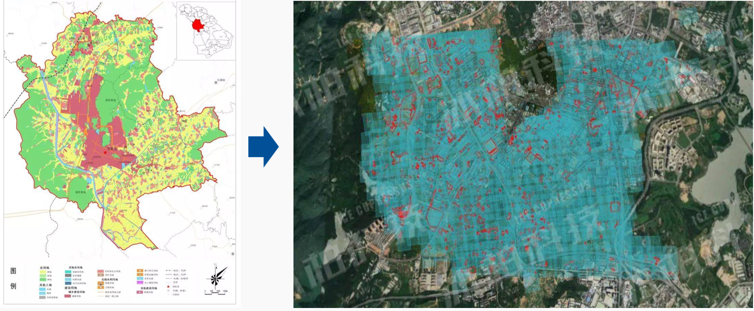 根據(jù)自然資源部門提供的土地利用現(xiàn)狀 、 永久基本農(nóng)田現(xiàn)狀 、 耕地現(xiàn)狀等土地規(guī)劃數(shù)據(jù),通過時空大數(shù)據(jù)平臺進(jìn)行圖斑判讀 、 分析和篩選 , 形成疑似 “ 兩違 ” 圖斑。