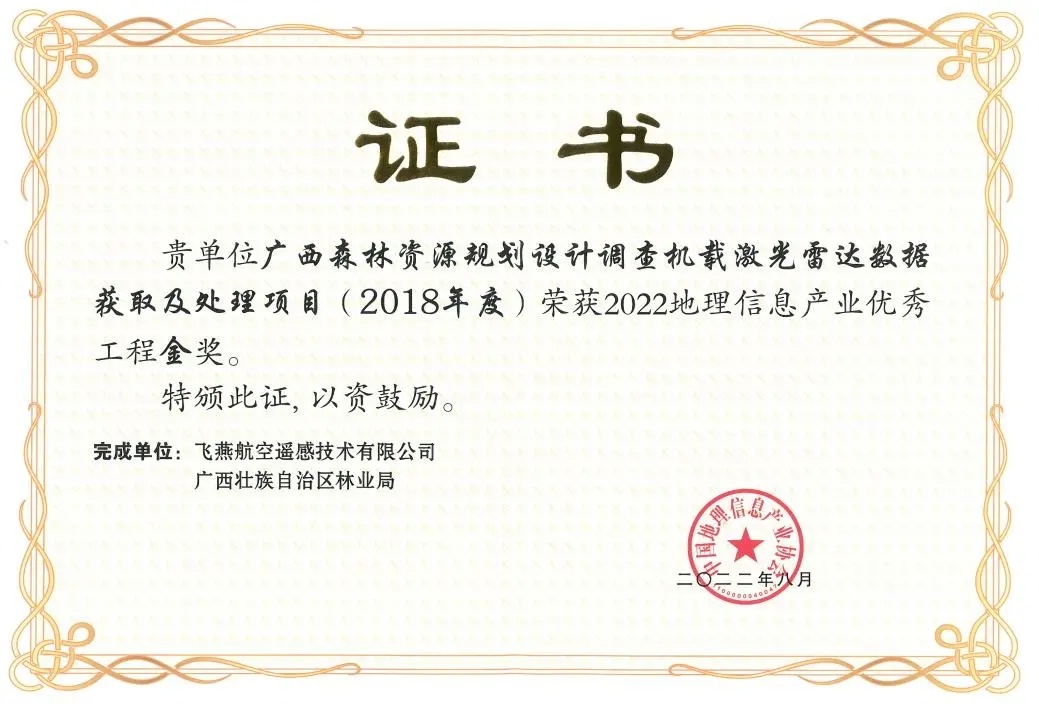 在廣西森林資源規(guī)劃設計調查項目中,飛燕遙感采集了10萬平方公里的激光點云數據,并將植被和地面點云分類,用于二類調查。是國內首次復雜地形條件下機載激光雷達的大規(guī)模林業(yè)應用,并獲得了中國地理信息產業(yè)協(xié)會優(yōu)秀工程金獎。