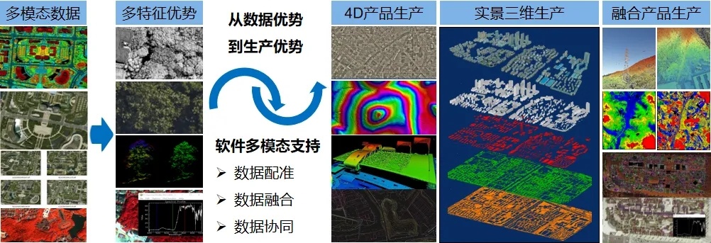支持多源高分辨率影像聯(lián)合處理,通過(guò)對(duì)影像進(jìn)行空三、密集匹配、構(gòu)網(wǎng)、紋理映射,輸出Mesh實(shí)景三維模型,結(jié)合激光點(diǎn)云數(shù)據(jù),生成DSM、DEM、DOM、DLG等數(shù)據(jù)產(chǎn)品,豐富成果類(lèi)型。