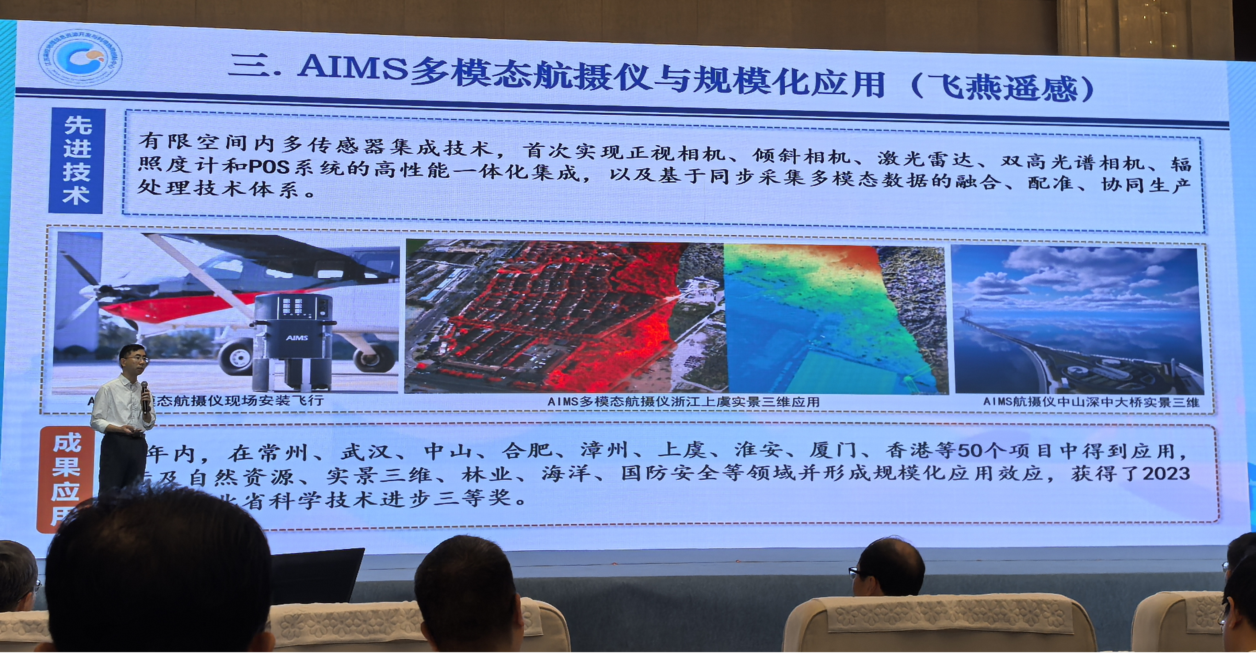 會上,多項地理信息協(xié)同創(chuàng)新代表性成果集中發(fā)布,省地理信息產(chǎn)業(yè)研究院副院長周良辰上臺發(fā)布最新成果。其中,飛燕遙感的AIMS多模態(tài)航攝儀的研制與規(guī)?;瘧藐P鍵技術把數(shù)據(jù)要素作為贏在未來的革新力量。能夠一次性獲取多模異構、時相統(tǒng)一的航空遙感數(shù)據(jù),實現(xiàn)地物全要素精細感知優(yōu)勢。利用多模態(tài)數(shù)據(jù)協(xié)同提升處理、解譯和應用的自動化、智能化水平,形成特征豐富、關聯(lián)性強的系列數(shù)據(jù)產(chǎn)品,助力實景三維建設。