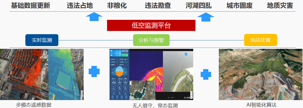 依托豐富的項目經驗與技術積累,飛燕遙感明確實景三維高質量、可持續(xù)發(fā)展與應用,離不開大范圍、多模態(tài)、高效率、可持續(xù)的數(shù)據獲取與處理體系,在自主研發(fā)8.8億像素AIMS?多模態(tài)航攝儀的基礎上,再次自主研發(fā)了遠瞰?Farsight大型低空無人值守監(jiān)測系統(tǒng)。不僅可以同步采集正射、傾斜/全景、點云、高光譜以及熱紅外影像,構建低空遙感信息數(shù)據“全景化”,還可以憑借其低成本、高續(xù)航的優(yōu)勢,實現(xiàn)基于少量機庫的區(qū)域化全覆蓋。依托自主研發(fā)“玄鳥”AI算法庫,構建城市規(guī)建管“智慧腦”,實現(xiàn)變化圖斑數(shù)據智能化提取,分析與預警。